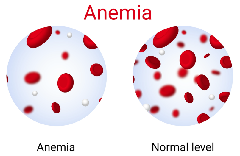 Iron is what binds oxygen to transport to the cells for cellular respiration (metabolism)